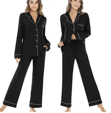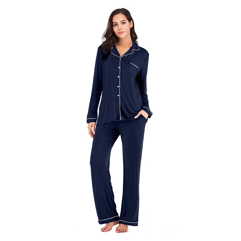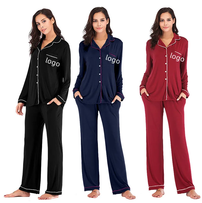 Custom logo Modal Pajamas for Women Set Cotton Winter Loungewear Sets Two Pieces Bamboo Sleepwear Woman Pajamas PJ Sets